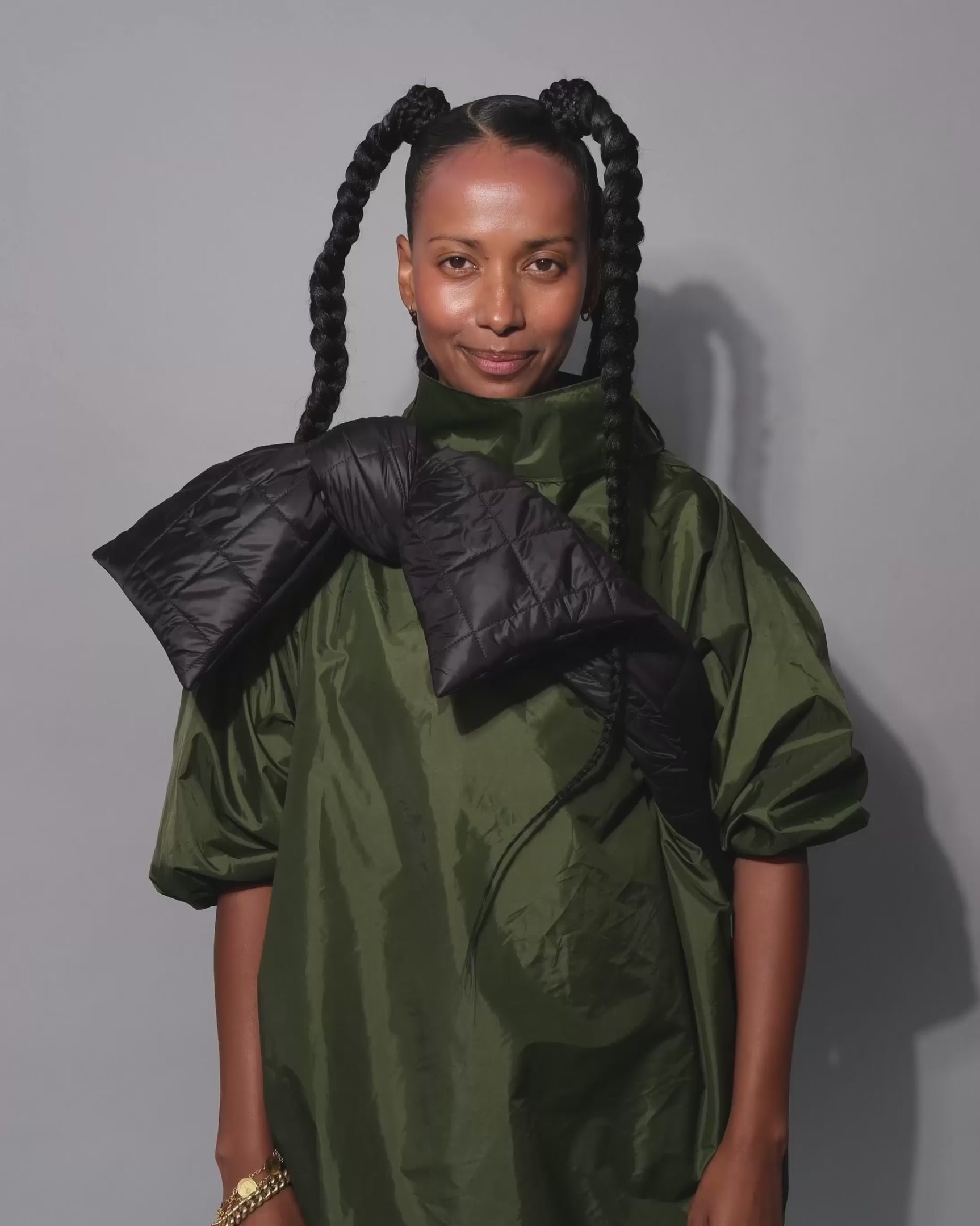 The Clara Bag is made from lightweight, quilted material in black, also featuring recycled deadstock lining. It can be worn crossbody or on the shoulder thanks to its long, outstretched arms that hug the body and meet in an irresistible and unmistakable PHOAF bow.